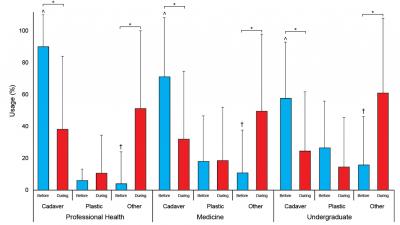 * Percent time using cadaver, plastic, and/or "other" was significantly different before and during Covid-19 (P ? 0.045).