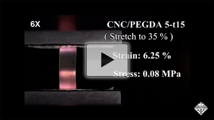 To increase the flexibility of cellulose nanocrystals, the researchers added a polymer called PEGDA and used UV light to crosslink it to the rod-shaped nanocrystals, producing films with bright iridescent colors ranging from blue to red, depending on the PEGDA amount. The films were both strong and flexible, stretching up to 39% of their original length before breaking. During stretching, the color of one film gradually changed from red to green, and then changed back when relaxed. According to the researchers, this is the first time that stretching- and relaxing-induced, reversible structural color changes that are brilliant and visible to the naked eye have been realized for cellulose nanocrystal materials. The film also changed color with pressure and humidity, allowing the team to show or hide writing made by an inkless pen. The new bio-based smart skin could find applications in strain sensing, encryption and anti-counterfeiting measures, the researchers say.