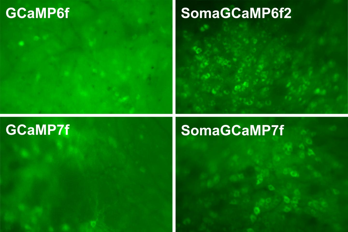 To achieve this, the researchers fused a commonly used calcium indicator called GCaMP to a short peptide that targets it to the cell body. The new molecule, which the researchers call SomaGCaMP, can be easily incorporated into existing workflows for calcium imaging, the researchers say.