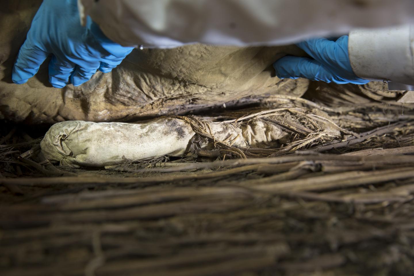 Inside the coffin they find the bundle, wrapped in a piece of linen cloth. Judging by the length of the femur, it was 5-6 months old and stillborn. The discovery raised a number of questions - one of them was why it was in the bishop's coffin.