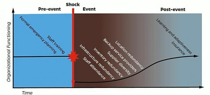 Researchers identified several factors that influence how resilient an organization is during times of emergency. They found that the organizations able to recover more quickly had ten characteristics in common: formal emergency planning; staff training; reliable staff attendance; redundancy of food supply, food suppliers, infrastructure, location, and service providers; insurance; and post-event learning after a disruptive event. Organizations that were large, well-resourced, and affiliated with national or government partners tended to display more of these characteristics.