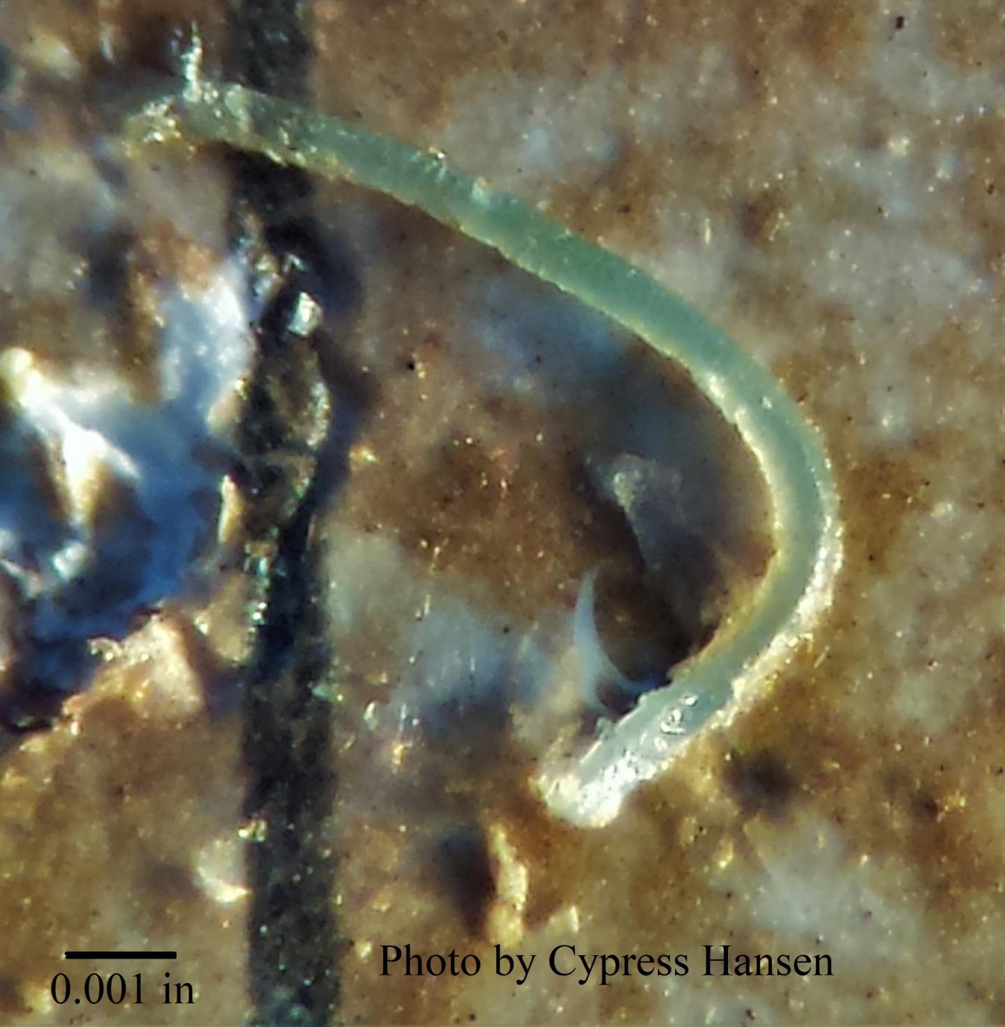 image: Microplastic viewed under a microscope.