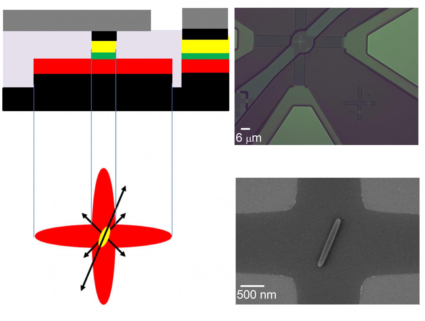 The increased number of states is achieved by replacing one of the magnetic layers with a structure in the form of two crossing ellipses paving the way for MTJs with even larger number of states. The image shows schematics of the device and actual pictures taken with a scanning electron microscope. This research appears as an Editor's Pick article in an August issue of Applied Physics Letters.