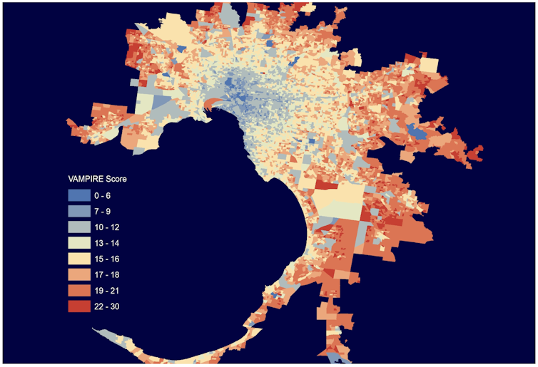 ‘VAMPIRE score’ refers to the name of the dataset, the Vulnerability Analysis for Mortgage, Petroleum and Inflation Risks and Expenditure, which is available via the AURIN Map portal.