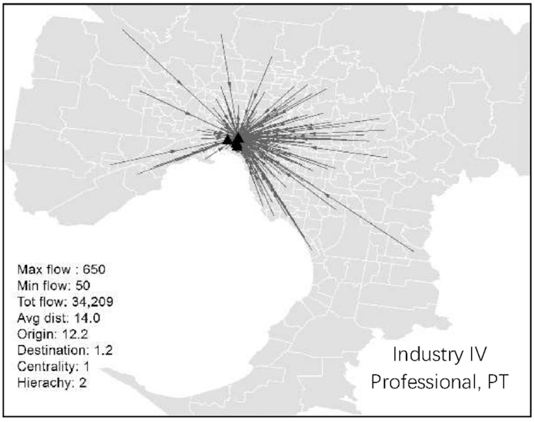 Public transport commuting patterns of professional scientific and financial workers. The authors