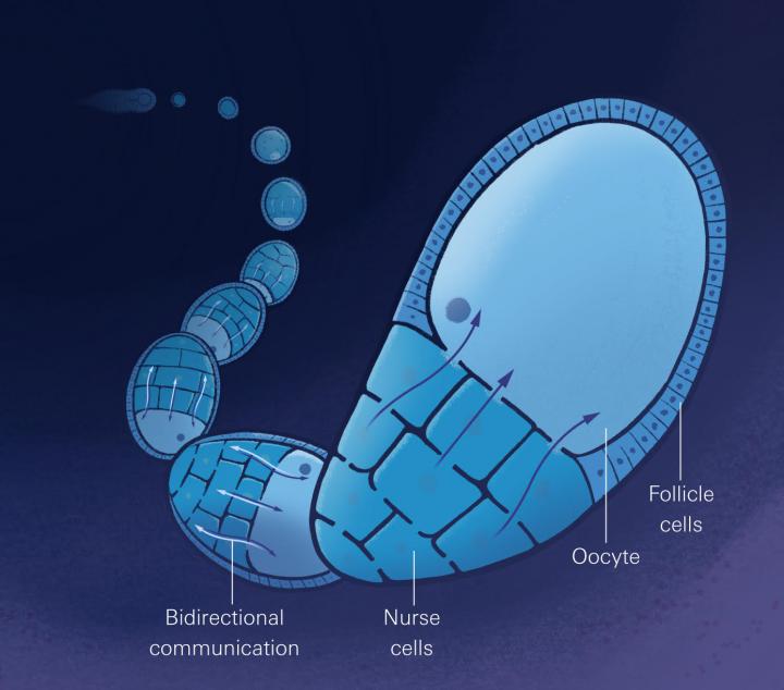 "Here we show an example of bidirectional communication -- a dialogue -- between different cells. The egg is taking an active hand in controlling its own feeding by these supporting cells," says Stanislav Shvartsman, head of the developmental dynamics group within the Flatiron Institute's Center for Computational Biology and professor of molecular biology at Princeton. The discovery of bidirectional communication in fruit flies has implications for understanding development in mammals, in which the egg is also nursed by surrounding cells.