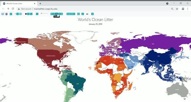 Take the so-called Great Pacific Garbage Patch, a cluster of marine debris in the Pacific Ocean, for example. Tracking marine litter will help answer questions about whether it is growing larger and questions about how much plastic is breaking down or sinking to the bottom of the ocean. The virtual tool also shows how countries around the world are connected.