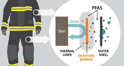 "If they touch the gear, it gets on their hands, and if they go fight a fire and they put the gear on and take it off and then go eat and don't wash hands, it could transfer hand to mouth," said Peaslee. "And if you're sweating and you have sweat pores, could some of these chemicals come off on the thermal layer and get into the skin? The answer is probably." Peaslee's study is the first to identify this potential source of PFAS exposure in firefighting PPE and argues that more studies are needed.