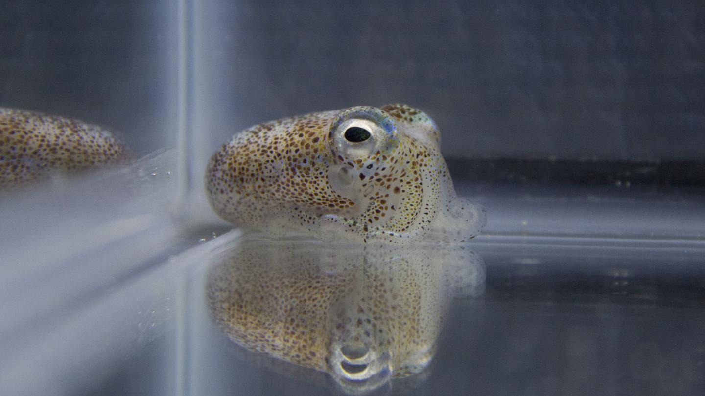 image: Adult Hawaiian bobtail squid. New research shows that genetic redundancy aids competition among luminescent bacteria that colonize the squid's light organ.