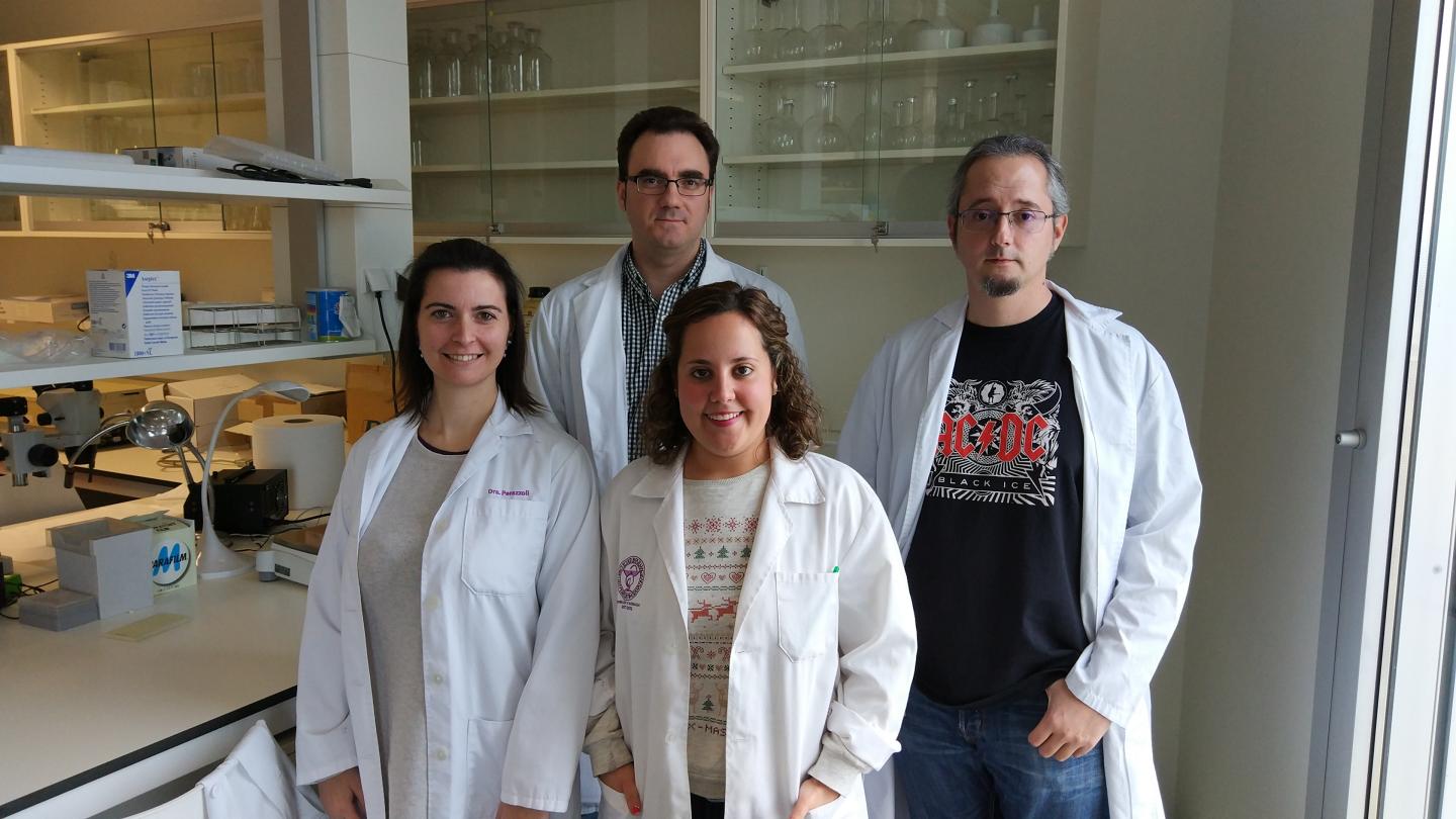 image: Members of the UGR research group who developed the project. From left to right, Dr. Gloria Perazzoli, Dr. Francisco R. Nieto López, Inmaculada Bravo Caparrós and Dr. Enrique J. Cobos del Moral.