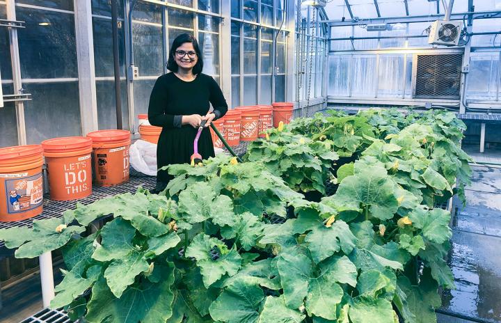 Although both students graduated, see new Crop Sciences students contributing to Hind's other pumpkin projects in this video. High school and transfer students can learn more about Crop Sciences coursework online.