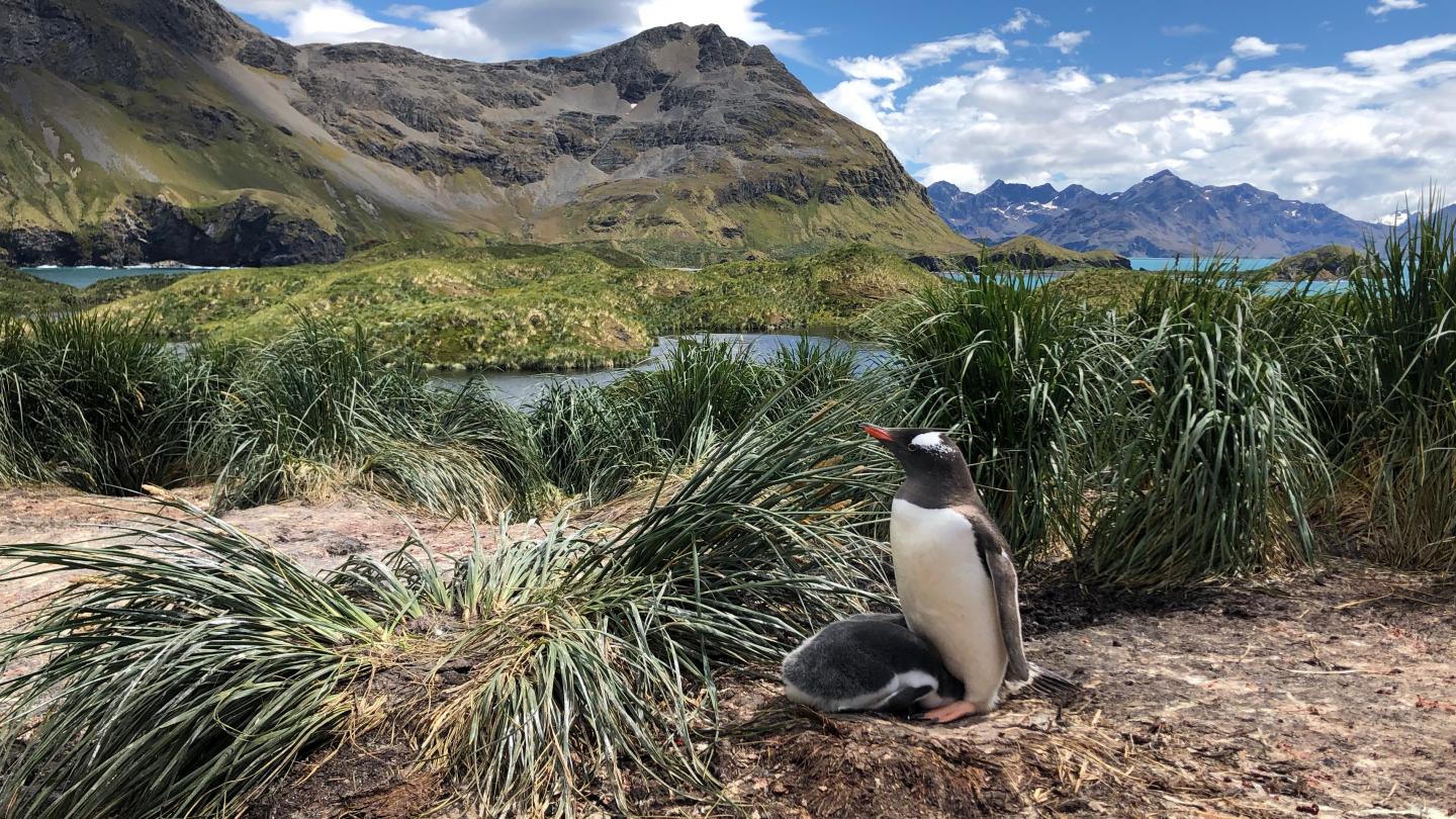 image: South Georgia Gentoo penguins (P. poncetii) live in more northerly habitats where conditions are milder, than their Southern Gentoo cousins which live on the Antarctic ice.