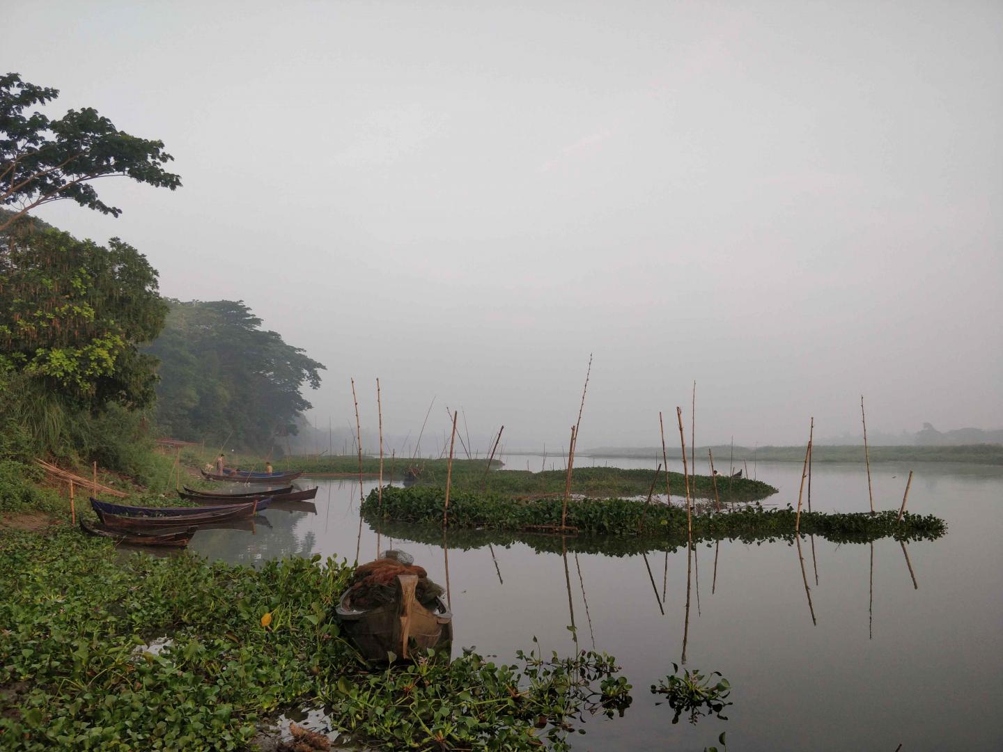 image: This is a misty morning on an oxbow lake in the Ayeyawady River delta.