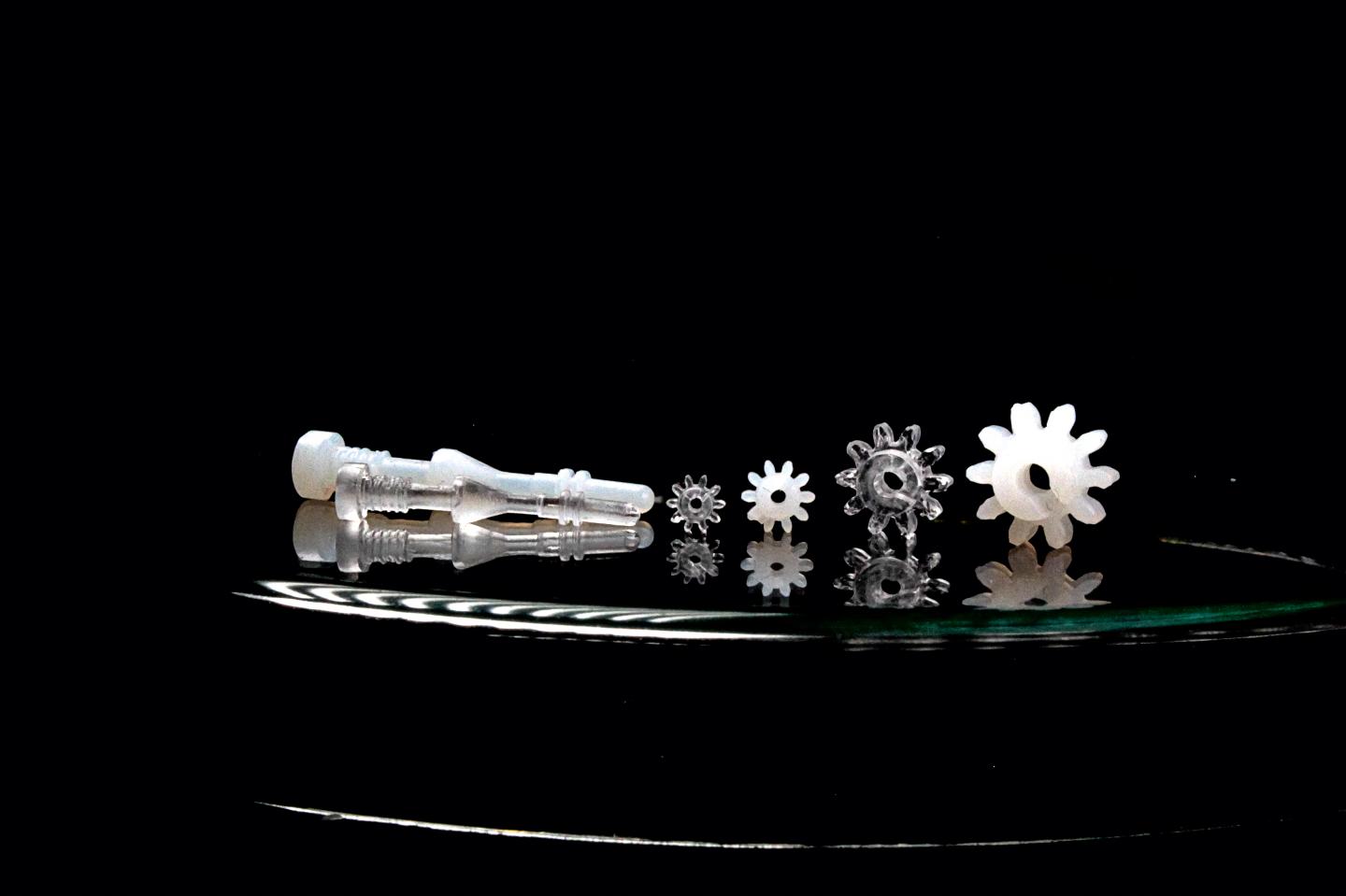 image: Injection-molded structures made from the newly developed Glassomer composite.