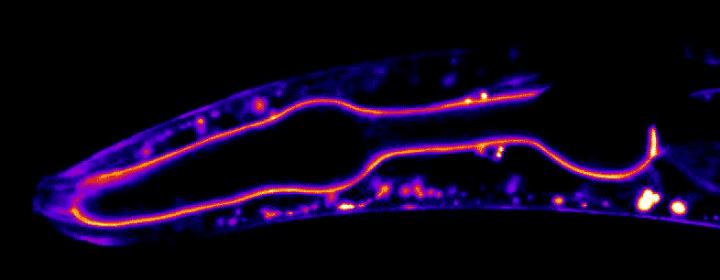 image: Duke University researchers used gene-editing techniques to tag and light up proteins in the basement membranes of living worms and watch them in action using time-lapse microscopy.