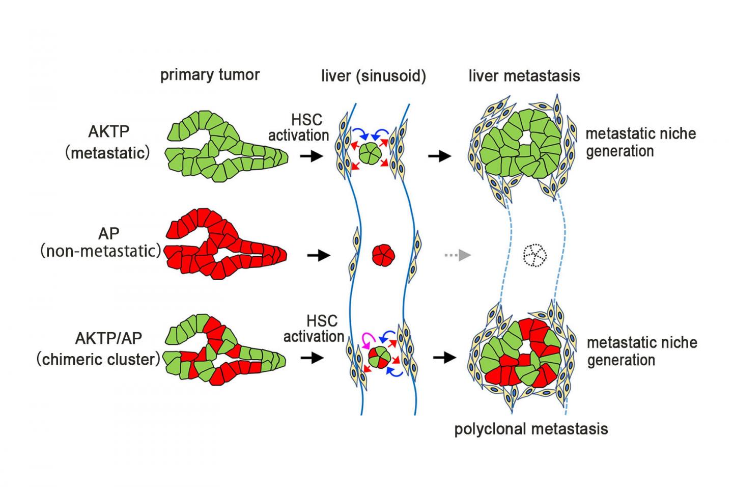 Most tumors consist of a heterogenous mix of cells. Genetic mutations found only in some of these cells are known to aid with the spread and progression of cancer. However, oncologists often find that when tumors metastasize to distant organs, they retain this heterogenous nature--a phenomenon termed "polyclonal metastasis". The mechanism by which non-metastatic cells accompany the metastatic cells is ambiguous. Now, Masanobu Oshima and his research team have used mouse models to explain how non-metastatic cells begin their long commute.