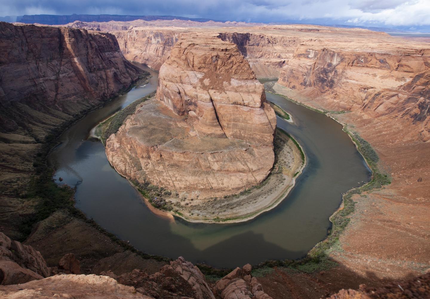 image: Depletion of groundwater will be more disruptive to vegetation, streams and rivers in the eastern US than in the arid Southwest, where deep groundwater already is largely disconnected from surface waters, illustrated here by the Colorado River meandering through red sandstone in northern Arizona.