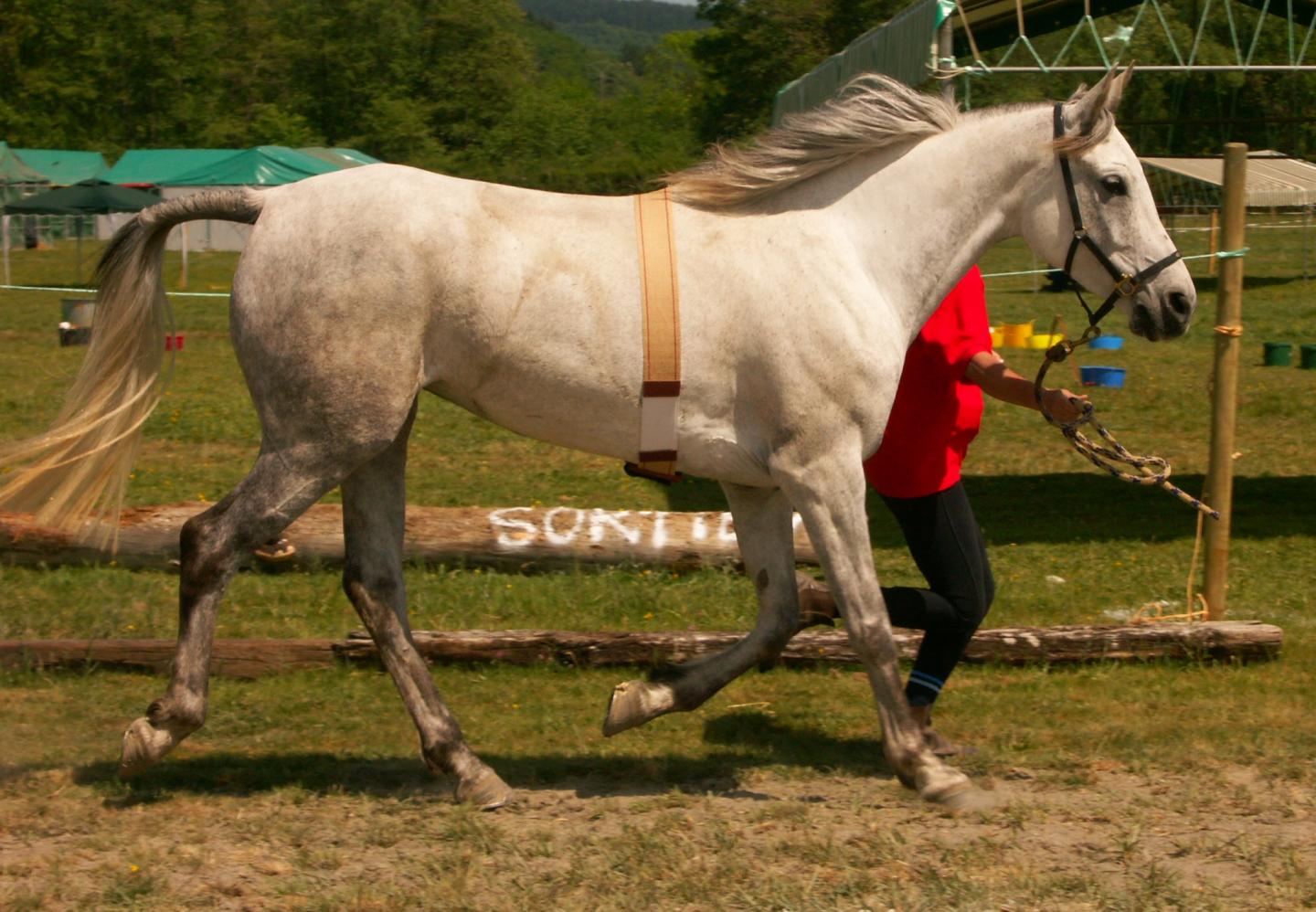 image: A typical endurance horse (Arabian breed) presented for a gait test before the start of the race to check locomotor soundness. During an endurance competition (100-160 km), horses must undergo veterinary inspection at the end of each 20 to 40 km loop to check their recovery and capacity to continue the race under good health conditions. The energetic expenditure during an endurance race is very high, so an interesting model to show the functional relationship between the microbiota profile and energetic metabolism at the level of the mitochondria.