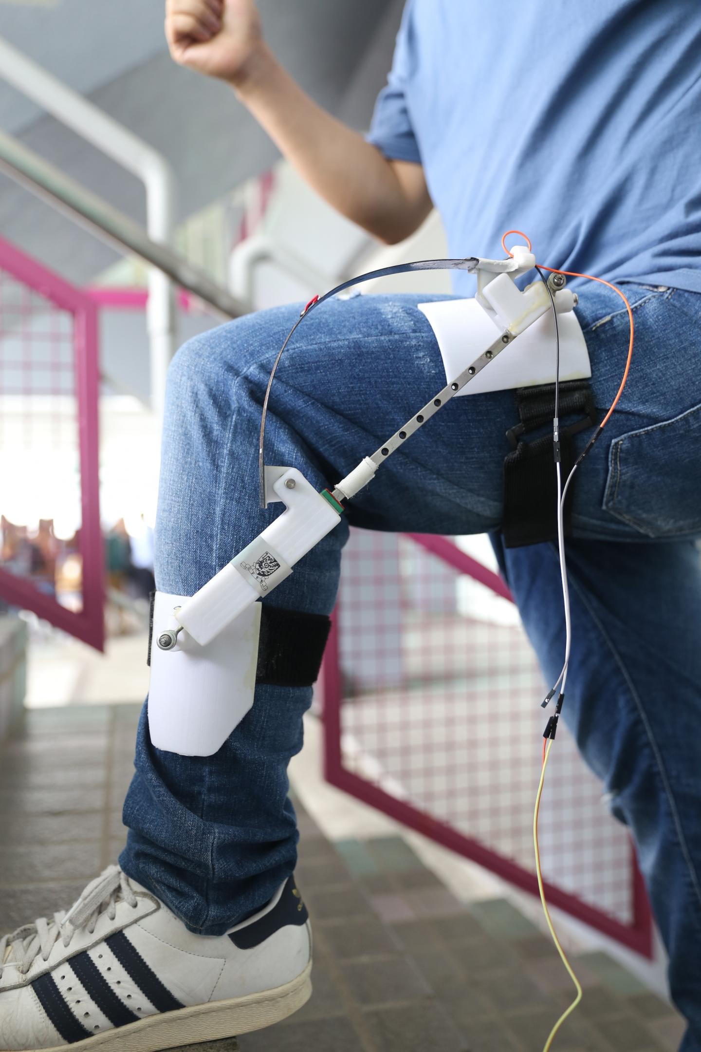 Professor Liao said, "The human knee joint has a larger range of motion than other lower limb joints such as the ankle and hip, which enables energy harvesters to capture the motion more easily and generate more electricity." The prototype harvester, made by piezoelectric macro fiber composites, can generate an average power of 1.6 mW, when the wearer walks at about 2-6.5 km/h. The generated electricity is efficient to power common wearable electronic devices such as smart bands. Furthermore, the prototype weighs only 307 grams. When walking with it, the wearer's metabolic cost is almost the same as that when walking without the device. Unlike the existing electromagnetic generator-based energy harvesters, the lightweight smart materials-based energy harvester can capture energy from human motion without increasing the wearer's burden. It is expected to significantly promote the use of biomechanical energy harvesters.