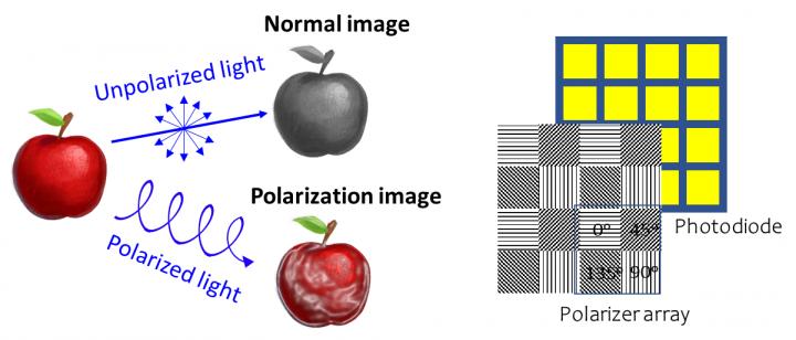 image: Visualized images obtained by detection of polarized light and conventional polarization image sensor