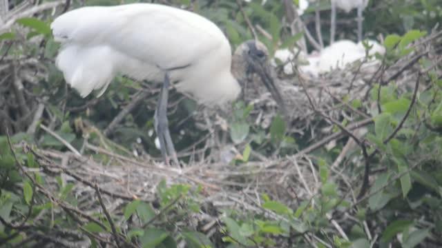video: A wood stork and chicks in nest in urban South Florida.