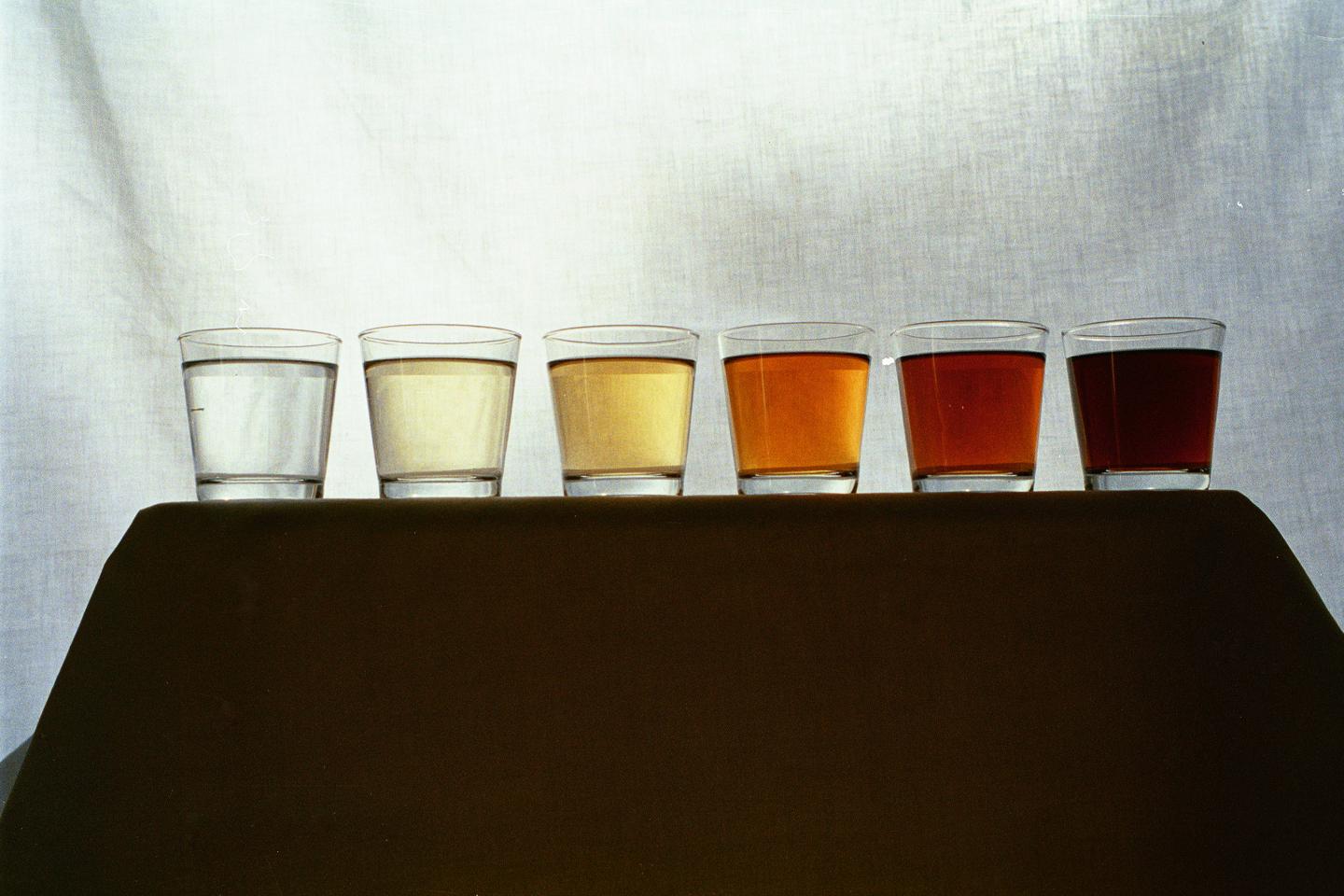 image: Differences in water color between surface waters are due to differences in the concentration and composition of organic matter as well as iron. The water in the glasses comes from natural waters within a distance of 35 kilometers in the county of Jönköping, southern Sweden.