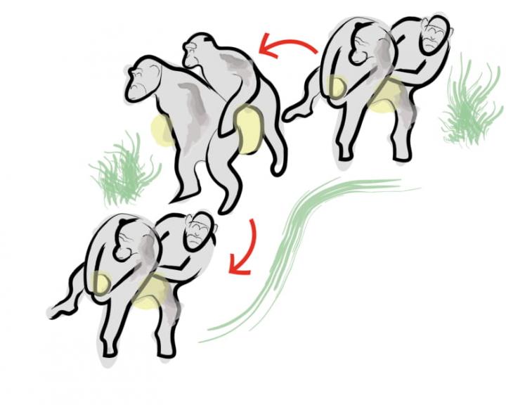 The researchers report an endogenously-effected case of ritualized dance-like behaviour between two captive chimpanzees - synchronized bipedalism. By studying videos they revealed that synchronisation between individuals was non-random, predictable, phase concordant, maintained with instantaneous centi-second precision and jointly regulated, with individuals also taking turns as "pace-makers".