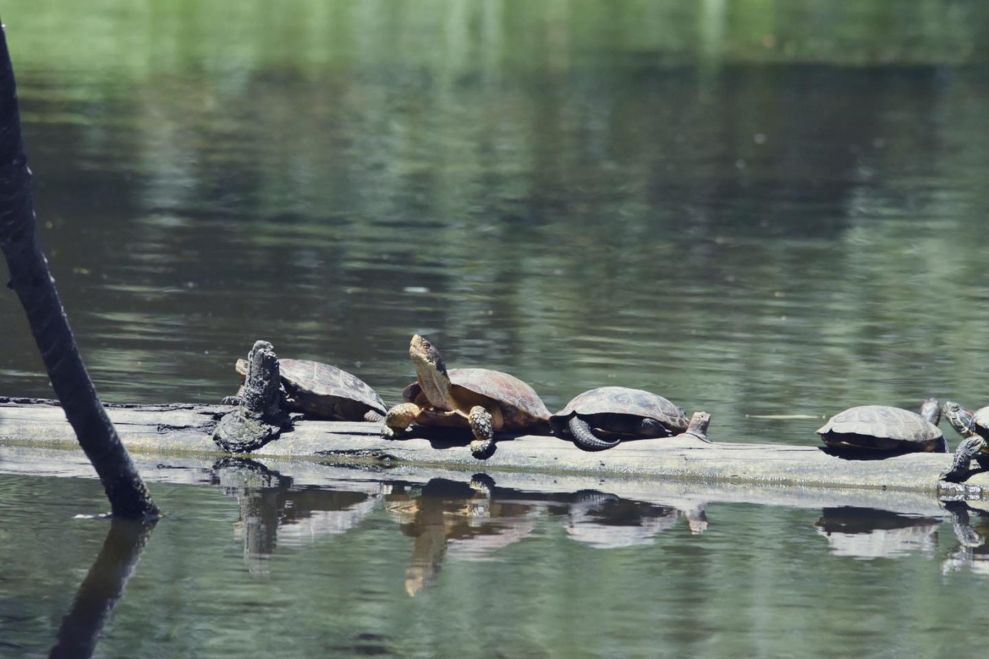 While the slider removal didn't have much of an impact on the western pond turtles' basking behavior, the researchers did find that the remaining sliders spread out to a few select basking sites, indicating that they were actually crowding each other out before the removal.