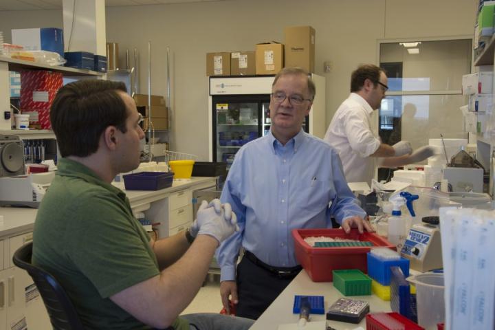 image: Richard M. Myers, PhD, and Nicholas Cochran, PhD, in the Myers Lab at HudsonAlpha Institute for Biotechnology.