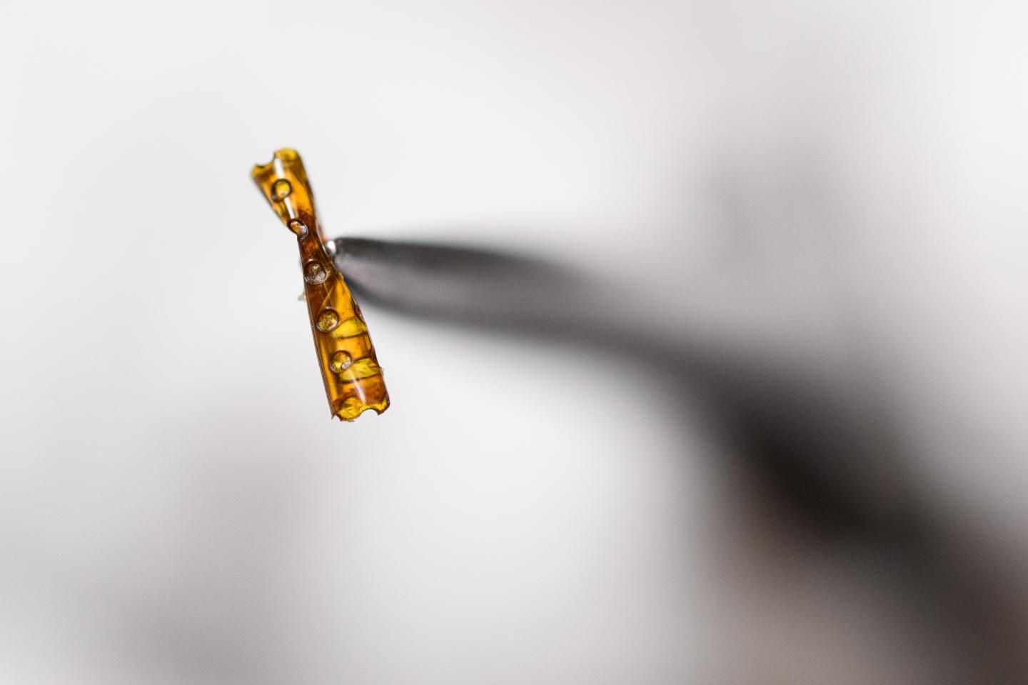 image: Image shows a polymerized hydrogel material that contains both an enzyme that battles bacterial infections and a protein that encourages bone growth.