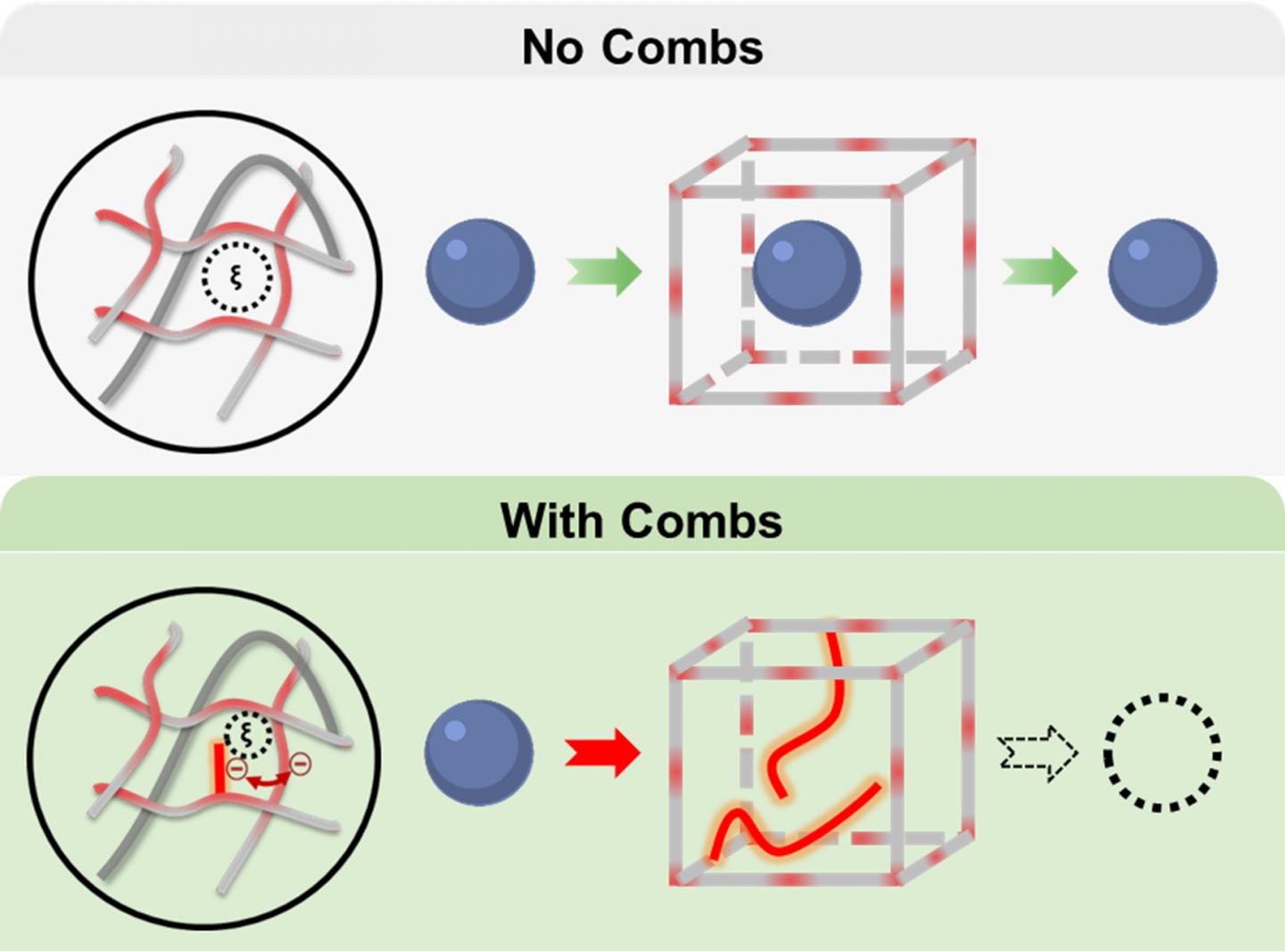The researchers found that when they used a negatively charged molecule called poly(2-acrylamido-2-methyl-1-propanesulfonic acid) or PAMP, the combs prevented the diffusion of dextrans. Furthermore, they also observed that glucose molecules were unhindered in their flow in and out of the hydrogel.