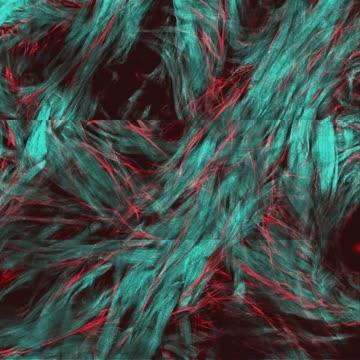 video: Collagen fibers (turquoise) are arranged in a mesh-like structure. The elastic fibers (red) also share the same architecture.