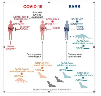 Because ORF3b of SARS-CoV is known as a viral antagonist against IFN production, they hypothesized that the difference on the length of ORF3b gene between SARS-CoV-2 and SARS-CoV may alter their anti-IFN activity and further may explain the difference in the symptoms of these two viral infections.