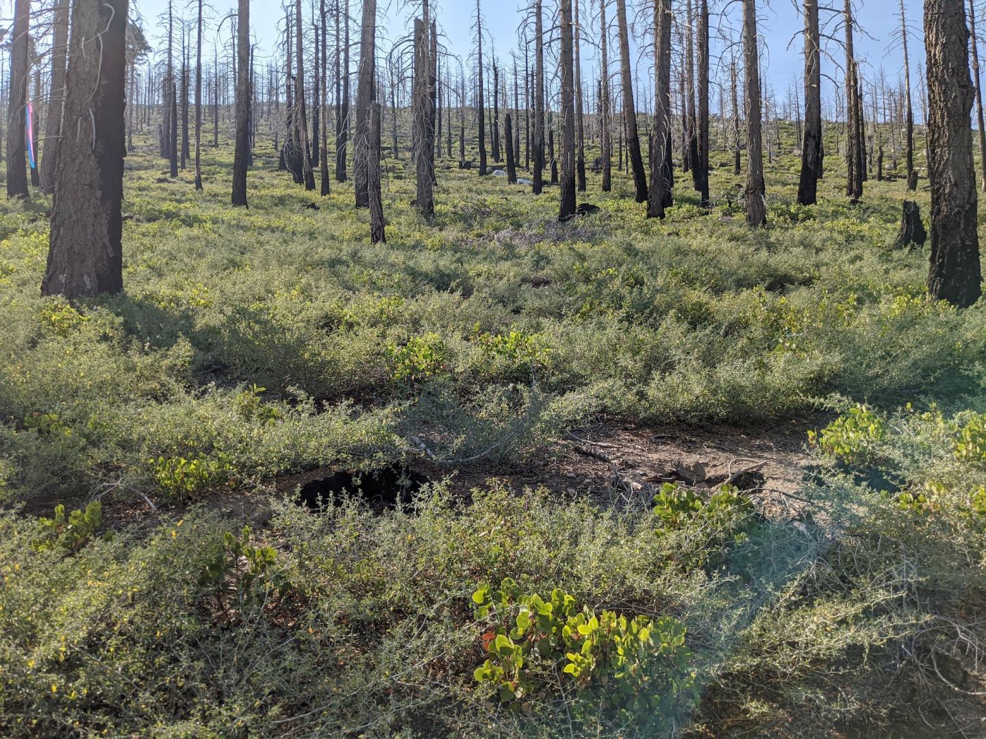 image: A post-fire area of the Sierra Nevada mountains with very little conifer regeneration.