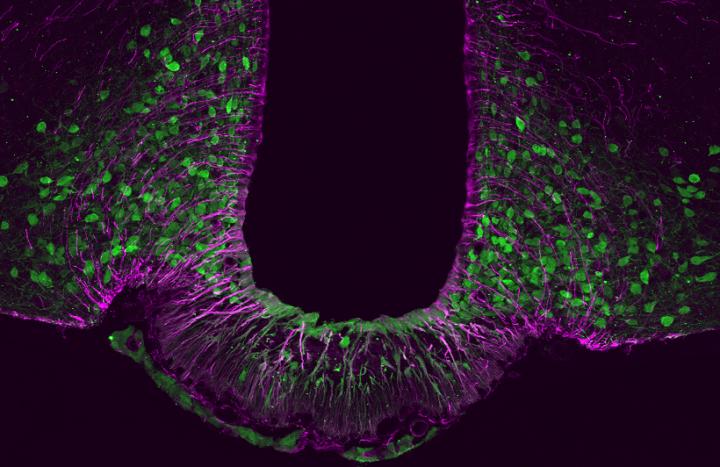 image: Tbx3 (green) plays a crucial role for the function and maintenance of satiety neurons in the brain.
