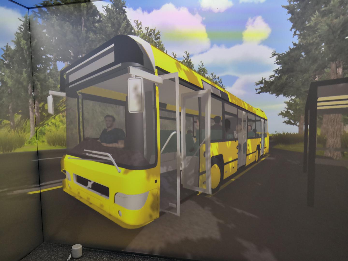 image: This is the Blue Room displaying a bus scenario to help people with autism overcome their fears and phobias.