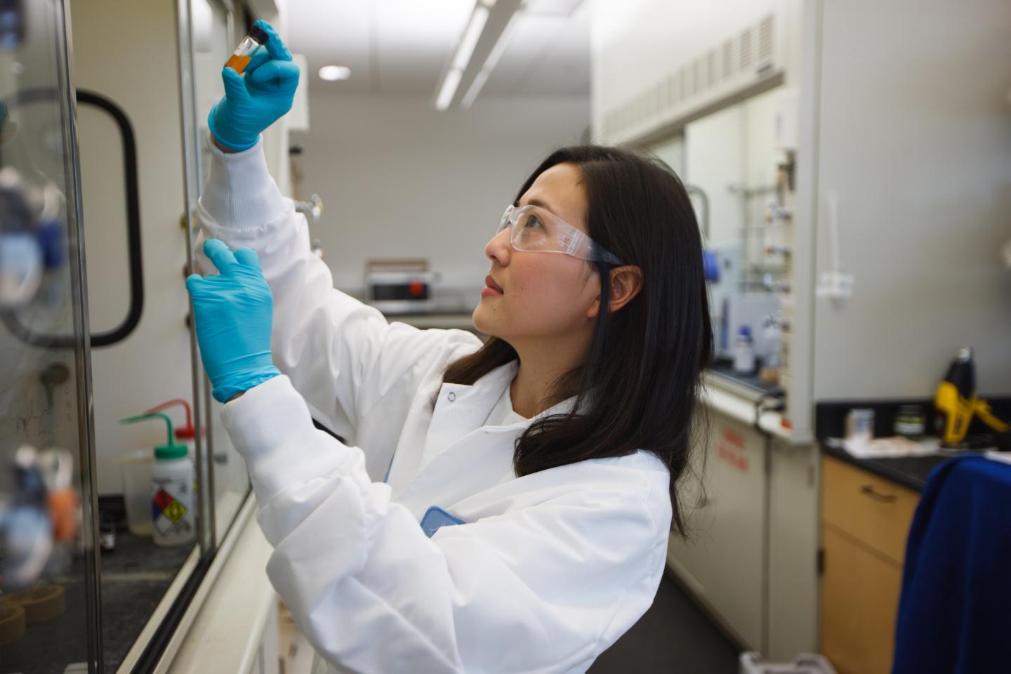image: Scripps Research biochemist Mia Huang, PhD, works in her lab in Jupiter, Florida.