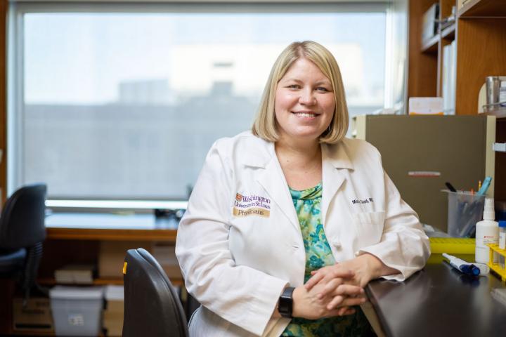 image: A study led by researchers at Washington University School of Medicine in St. Louis has identified a protein in the immune system that may protect babies from necrotizing enterocolitis, a leading cause of death among premature infants. Pictured is Misty Good, MD, MS, an assistant professor of pediatrics in the Division of Newborn Medicine at Washington University.