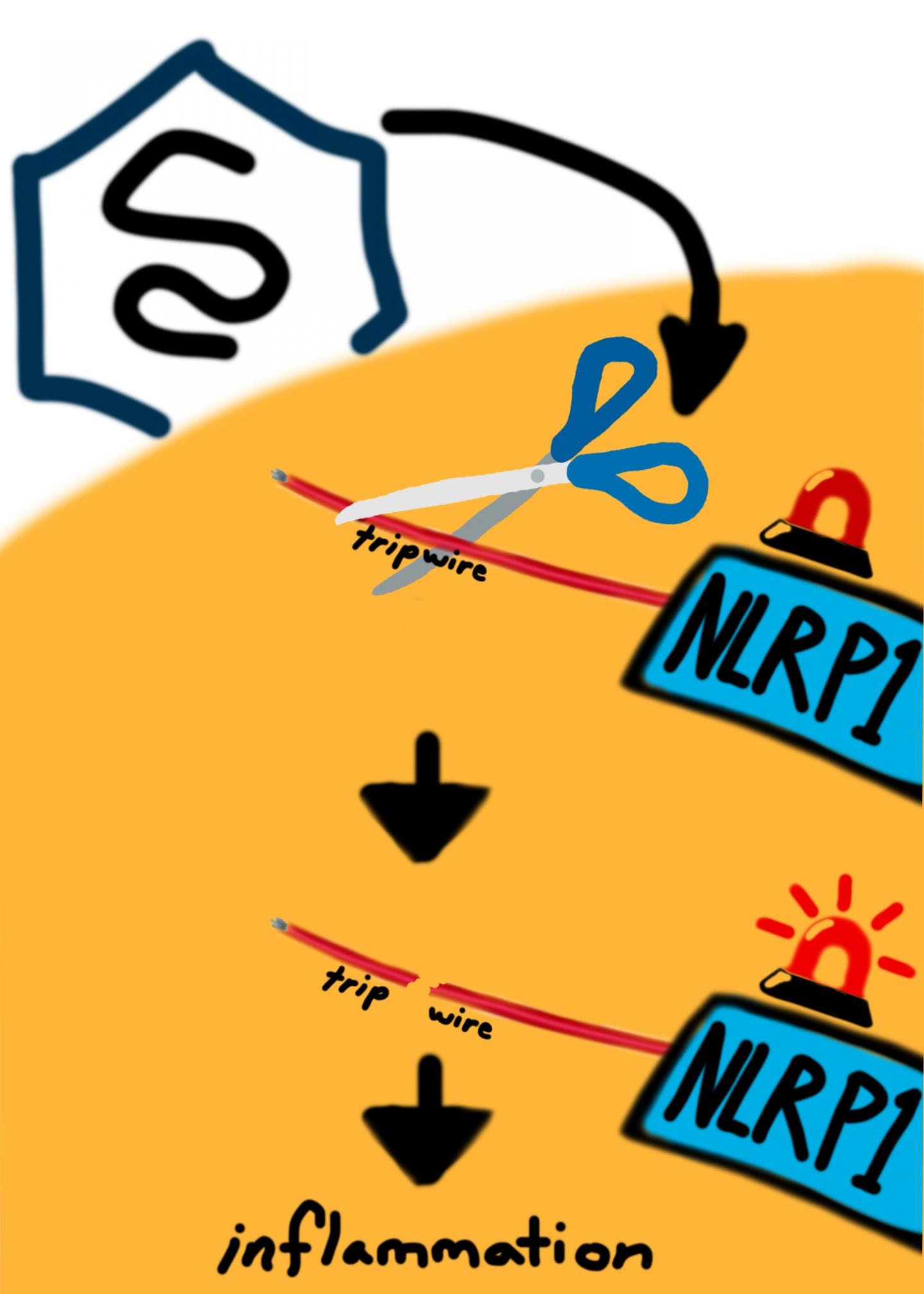 "In our paper we're showing that NLRP1 acts to bait viral protease cleavage and set off a sort of alarm, or tripwire, in the organism," said Tsu, the lead author of the study. "This is like an Achilles heel to the virus. This allows the host organism to evolve ways to take advantage of this evolutionarily constrained cleavage."
