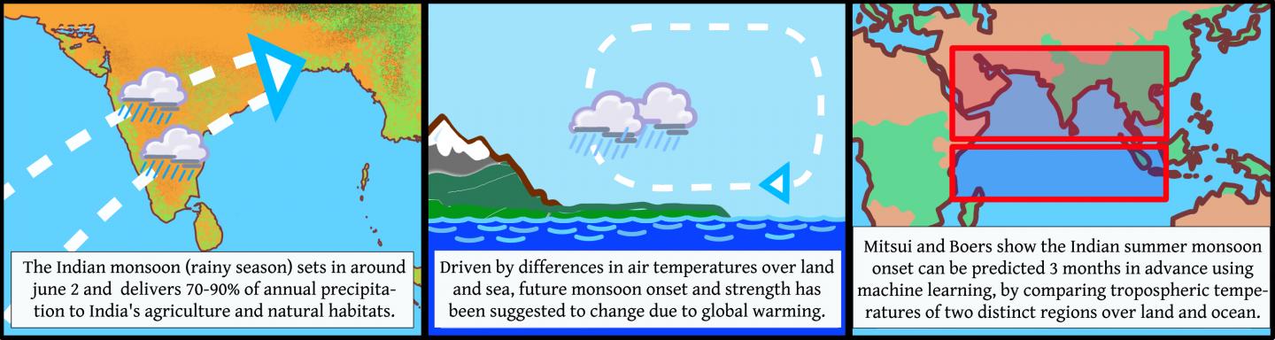 The onset of the Indian summer monsoon has been predicted three months ahead for the last 40 years with the highest precision up until today. The result indicates longer seasonal forecasts based on machine learning may be a way to mitigate the consequences of an erratic monsoon system under future global warming. Dr. Takahito Mitsui and Dr. Niklas Boers of the Potsdam Institute of Climate Impact Research (PIK Potsdam), Germany, published the results in Environmental Research Letters. The work is part of the European TiPES project, Coordinated from The Niels Bohr Institute, University of Copenhagen, Denmark and PIK Potsdam.
