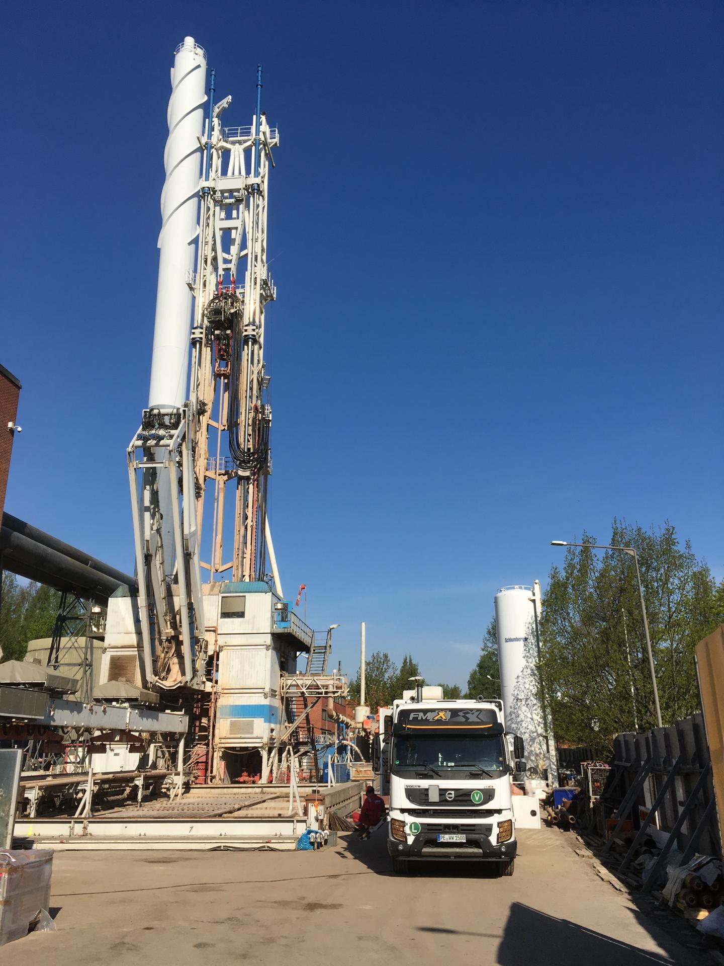 image: Drilling rig of the geothermal project in Helsinki, Finland. The project aims to supply the university campus with heat from a depth of more than 6 kilometres