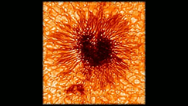 video: The Wave Front Correction context viewer camera at the NSF's Inouye Solar Telescope recorded this movie of a sunspot on Jan. 28, 2020. The 2000 by 2000-pixel camera captured this sequence at wavelength of 530 nanometers. The field of view is about 25 arcseconds square or about 12,000 miles across. This short movie compresses about one-and-a-half minutes of viewing into just a few seconds to highlight the significant evolution of small-scale structures known as penumbral grains and umbral dots.