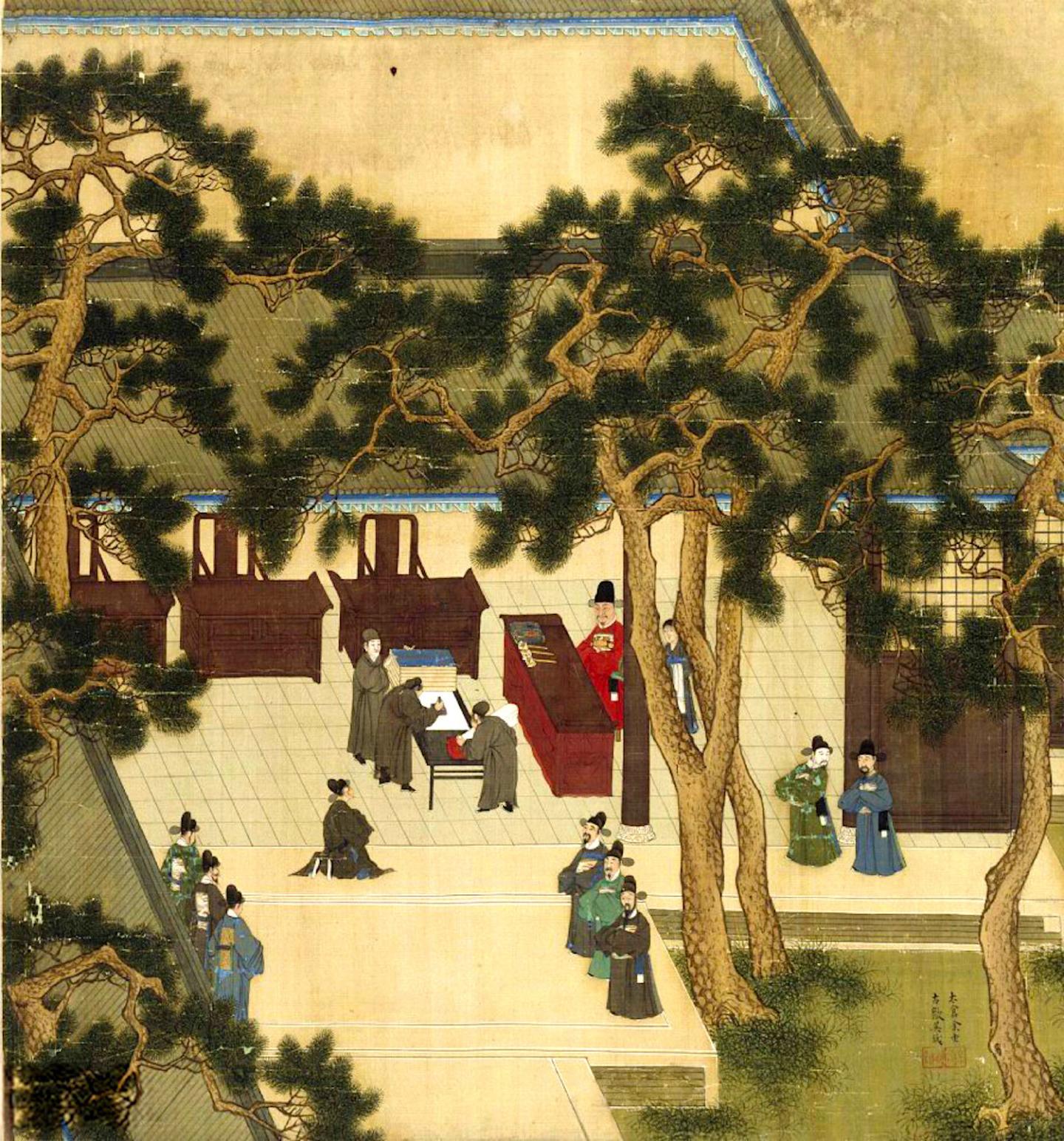 image: Xu Xianqin, Vice-Minister of Rites, overseeing the imperial civil service exam circa 1587, during the Ming Dynasty.