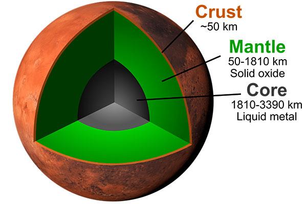 The seismometer on NASA's InSight mission will directly test this new model of Mars when it defines the depth to the Martian core-mantle boundary. Such compositional models for Mars and Earth provide clues to the origin and nature of planets and conditions for their habitability.