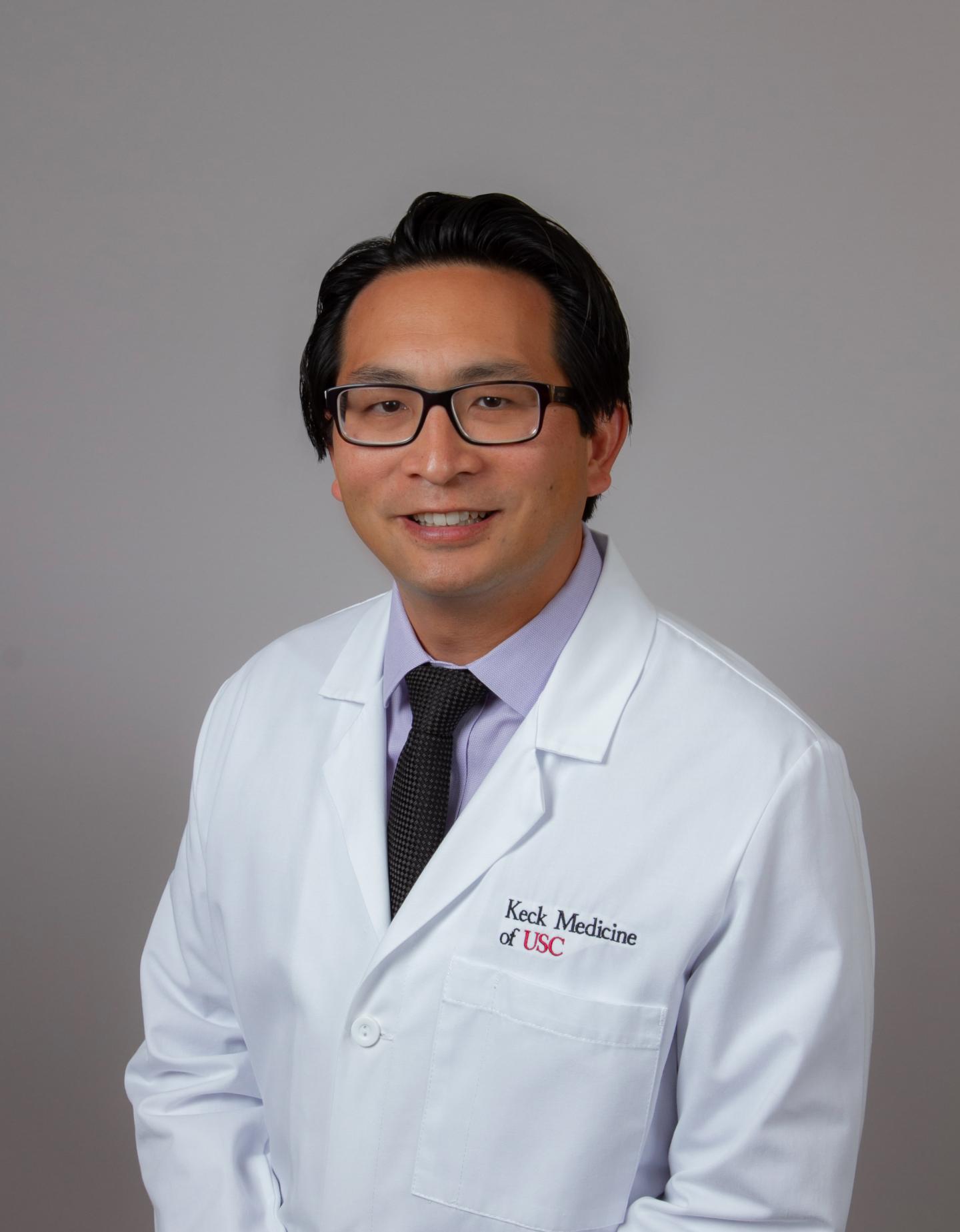 image: Darrin Lee, MD, PhD, a neurosurgeon with Keck Medicine of USC and the principal investigator of the site's clinical trial