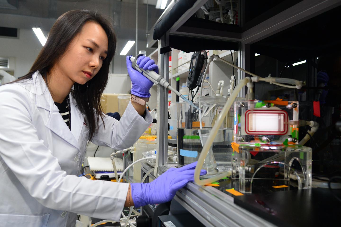 image: Researcher Hye-Won Kim adds magnesium to seawater to inhibit the fouling of desalination membranes.