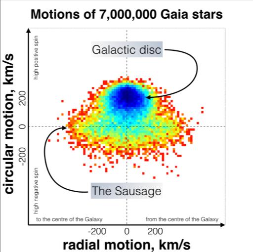 image: Gaia-Sausage structure detected by the Gaia satellite in velocity space. (Credit: V. Belokurov et al. 2018, MNRAS, 478, 611).