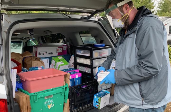 image: Member of Washington's Snohomish County Syringe Exchange preparing for an outreach effort.