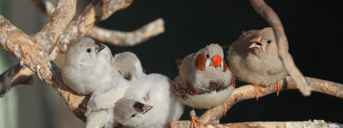 image: Captive zebra finches used for studying the long-term impact of DNP on health and lifespan.