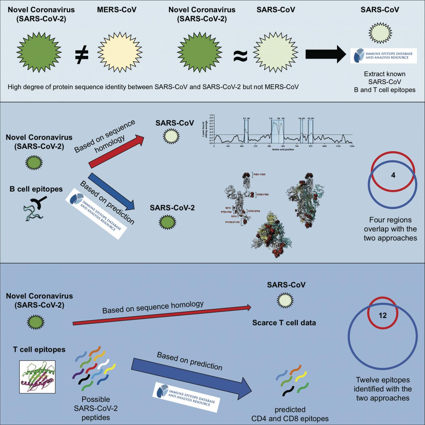 For their study, the authors used available data from the LJI-based Immune Epitope Database (IEDB), which contains over 600,000 known epitopes from some 3,600 different species, and the Virus Pathogen Resource (ViPR), a complementary repository of information about pathogenic viruses. The team compiled known epitopes from SARS-CoV and mapped the corresponding regions to SARS-CoV-2.